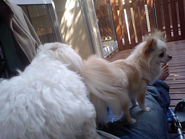 チワワのマリンちゃんはチェックアウトしてサクラちゃんはシャンプー中ですが、午後からのワンコ達のスナップです。 天気が良くてデッキが気持ち良いです。