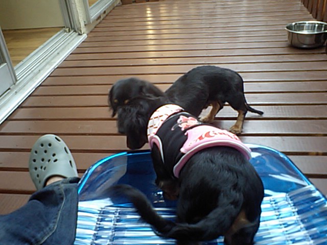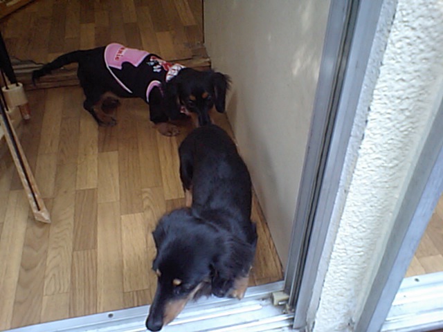 ダックスのブー君が気に入ったらしく、一生懸命追いかけてます。