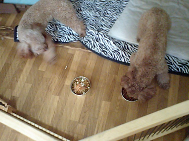 トイプー君ズはレトルトを拾って食べてます。