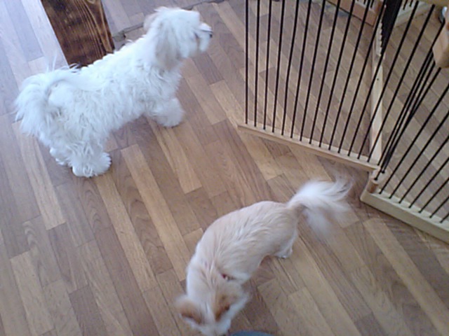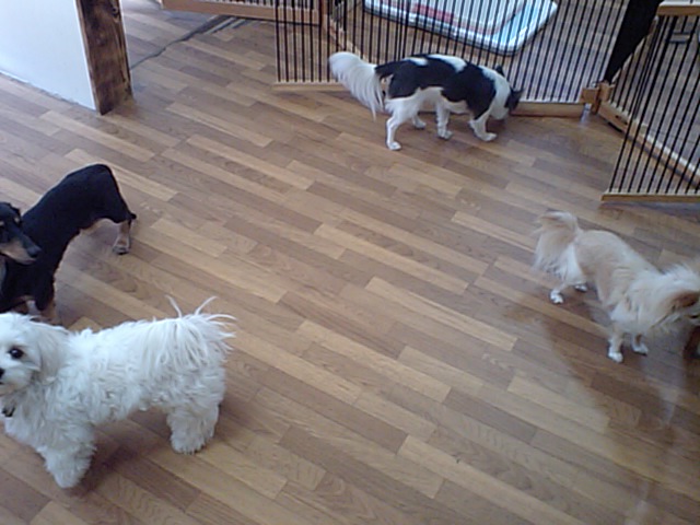 トイプー君ズがチェックアウトして、ガランとした店内。チワワのマリンちゃんとミックスのメイちゃんが走り回ってます。
