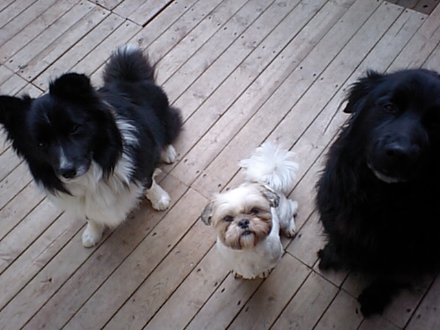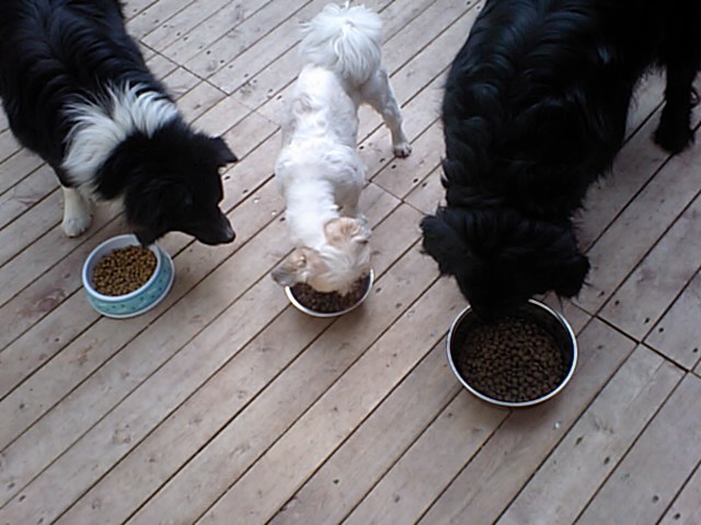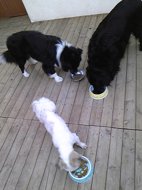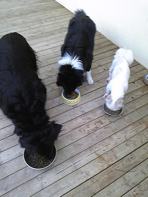 ボーダーのサエノスケ君とシーズーのラッキー君、みんなと仲良く完食しました。