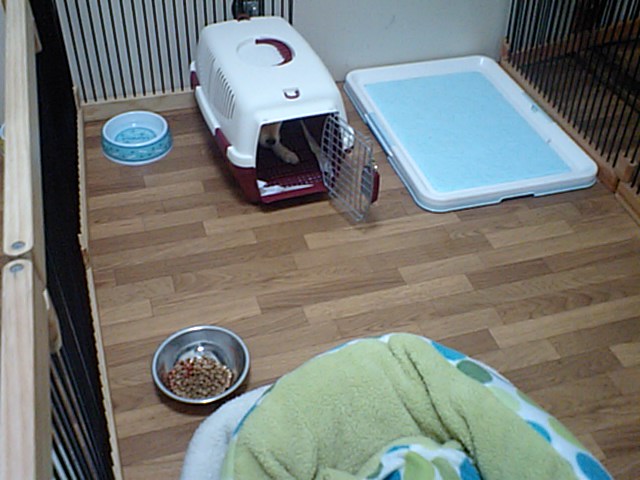 8a96328f.JPG豆柴の小春ちゃんは遅い晩御飯です。ハウスに入っているので、とりあえず置いておきますね。