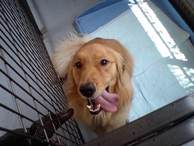 ゴールデンのそらちゃんがチェックインしました。最初は大型犬エリアの、他のワンコ達の勢いにビビり気味でした。サークルの中でしばらく落ち着いた後、自分からサークルから出てきました。ボーダーのサエノスケ君や、フラット大治郎とも少しずつ仲良くなれました。今はみんなと落ち着いてますよ。