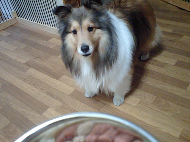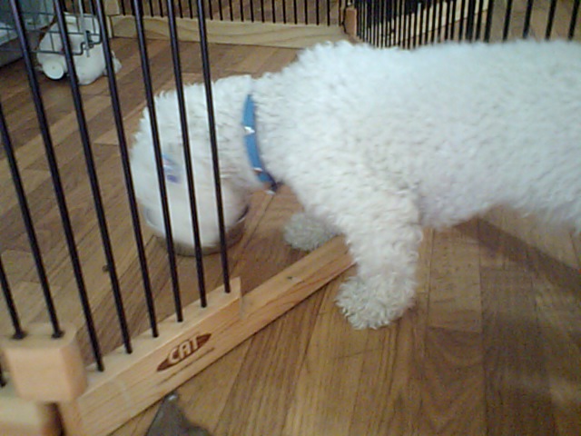トイプーのショーン君、夕べのご飯は少し口を付けただけです。ジャーキーを足してあげるとご飯と一緒に食べてます。
