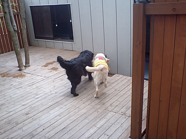 先週にフラット大治郎と仲良くなっているので、今日は来るなり遊んでます。 のびのびと良い顔してますよ。この様子なら来週はお泊まりでも問題ないですよ。