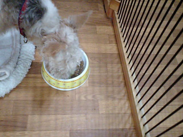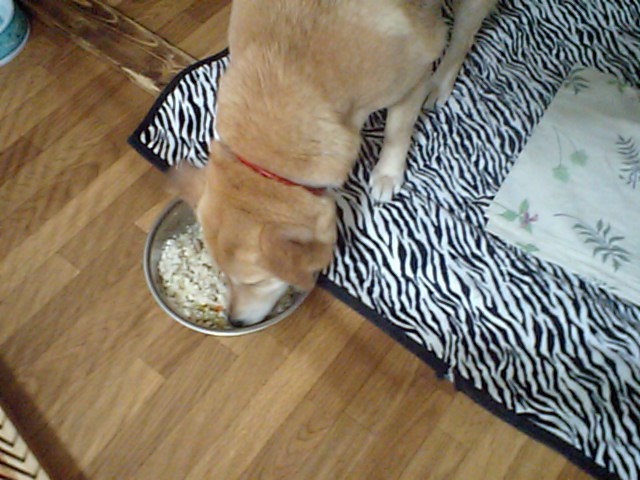 柴ミックスのムク君、今朝は150ccくらい食べました。