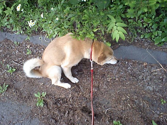裏の畑の道をお散歩して、オシッコとウン〇はしてますよ。