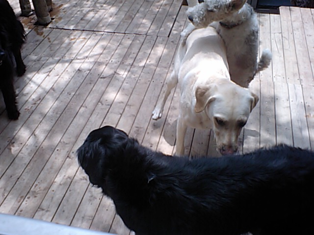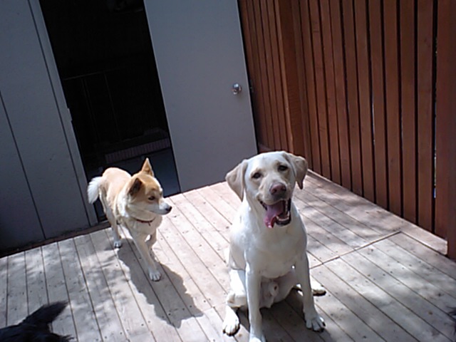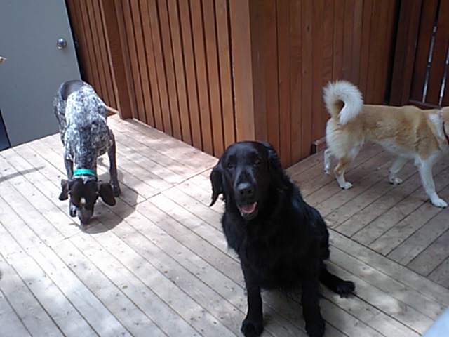 大型犬エリアでは柴ミックスのムク君、フラットケイ君共にしっかり食べました。