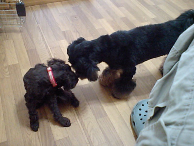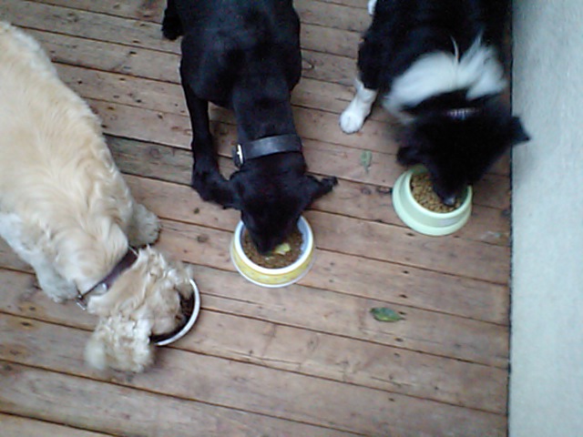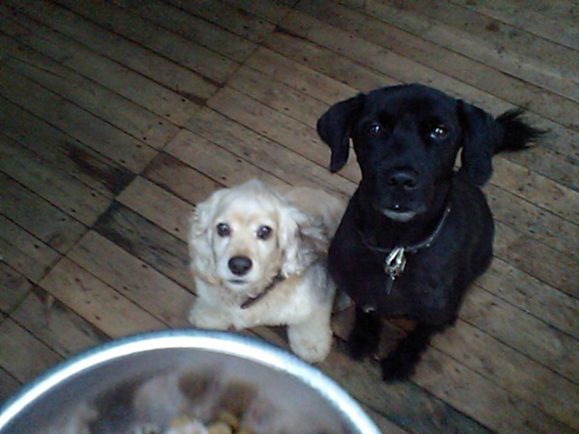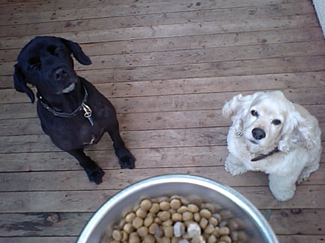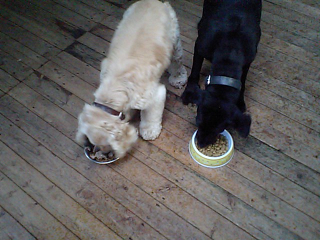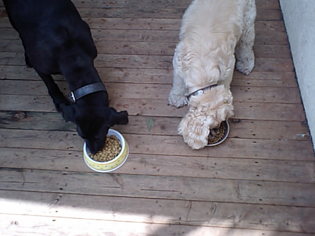 ボーダーのサエノスケ君とコッカーのニルス君、たちまち完食しました