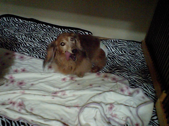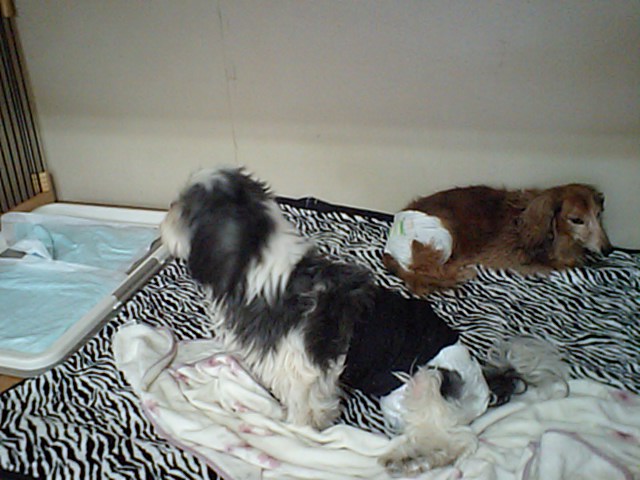 ダックスのチャッピー君は相変わらず出て来ません。ご飯も食べないので少し可哀想かな?早めのお迎えをお願いします。