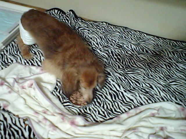 シーズーのぺぺちゃん、しっかり完食しました。ダックスのショコラちゃん、食べないので缶詰めを上げました。完食です。