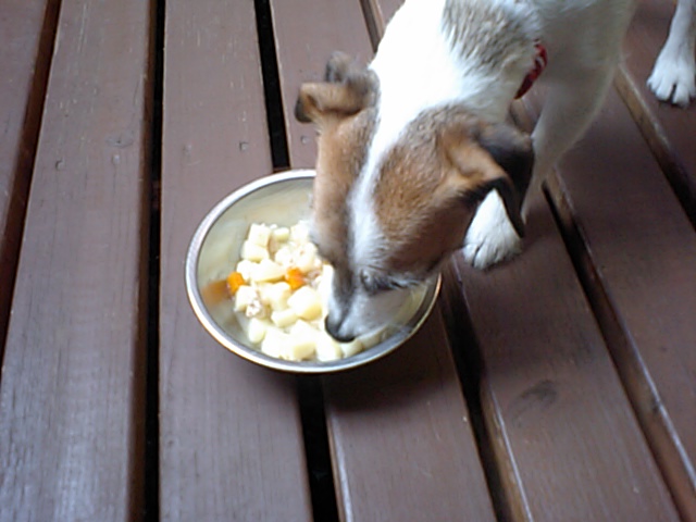 ジャック・ラッセルのリキ君は半分くらい食べました。そのまま置いておきます。