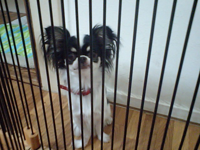 サークルの中でのんびりして貰います。外ではパピー達がバタバタと走り回ってます。