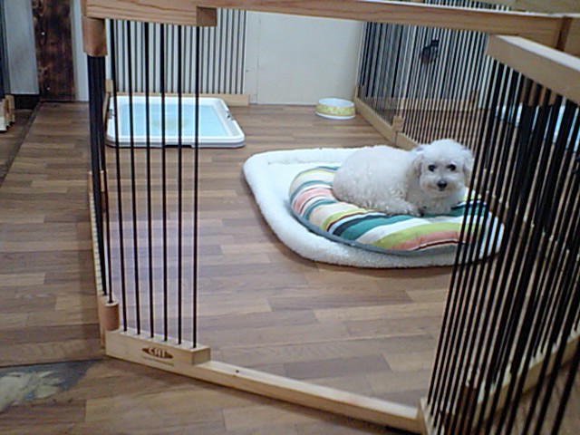トイプーのぴーなつちゃんは自分のクッションで良い子にしてるのですが、店長が近づくとサークルから出て来ます。そして店長に「遊んで遊んで」って足元でじゃれ付いてきます。可愛い… :*:・( ̄∀ ̄)・:*: