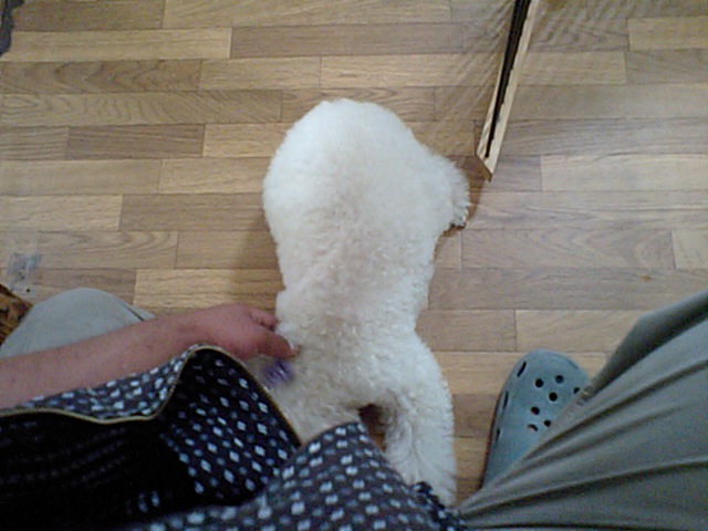 可哀想なのがトイプーのぴーなつちゃん、雷に怯えてます。