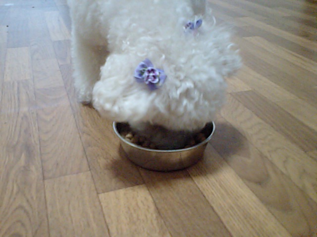 トイプーのぴーなつちゃん、晩御飯をしっかり食べました。