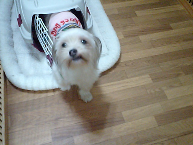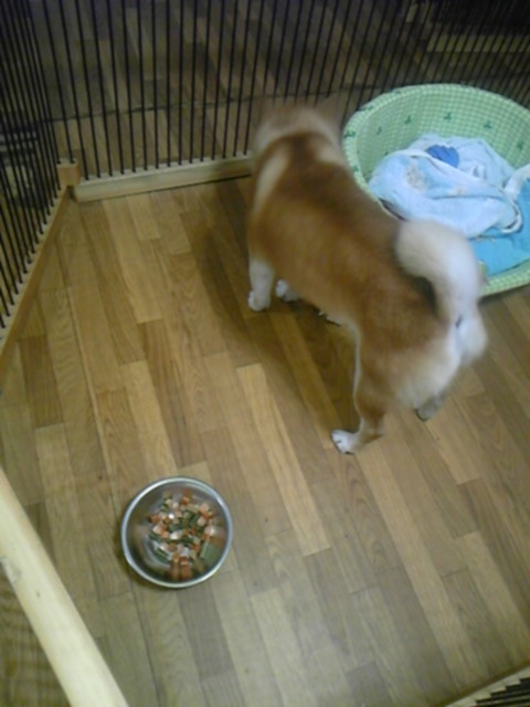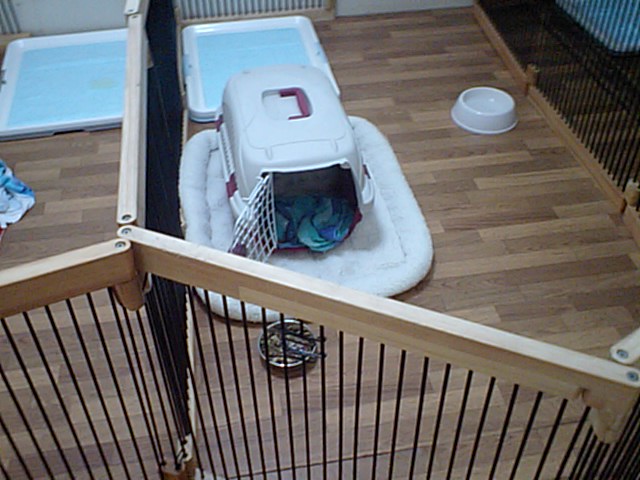 まだ少し寂しがってます。 とりあえず今夜は遅いので、サークルの中に居て貰いますね。お休み