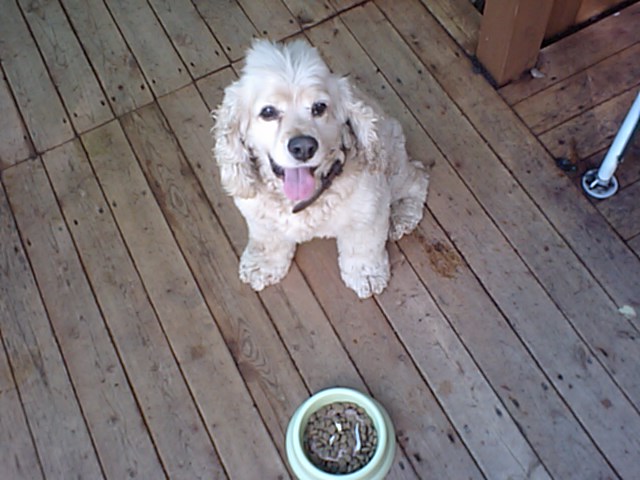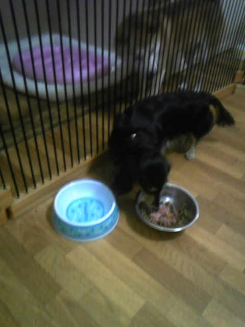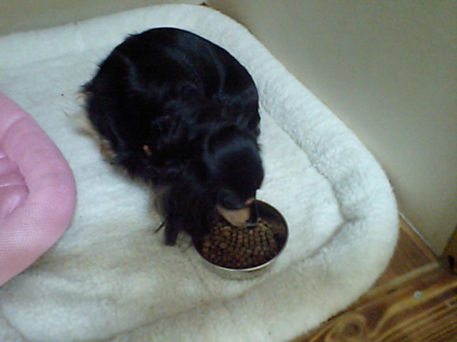 コッカーのニルス君はたちまち完食です。