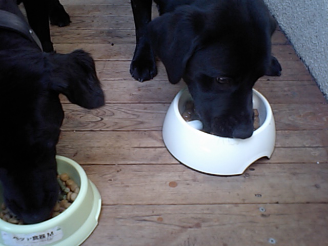 ラブラドールのアポロ君、たちまち完食です。