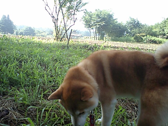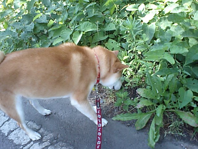 柴のハル君とオプション散歩してきました。朝なのに既に気温は高く、なるべく日陰を選んで歩きました。ハル君は元気にお散歩しましたよ。