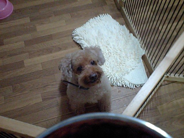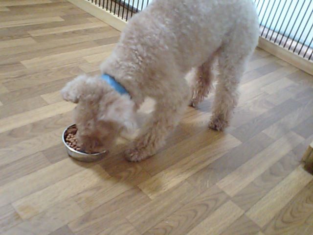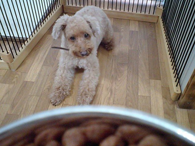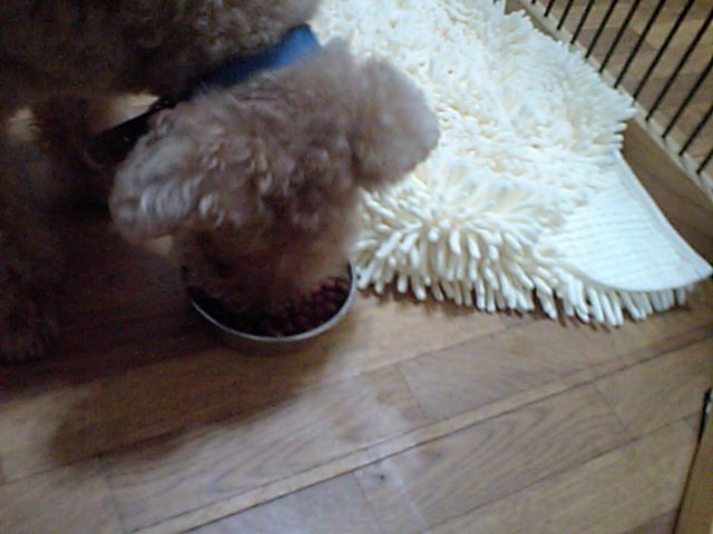 トイプーのシェリー君、ちゃんとお座りして待てをしてました。しっかり完食しました。