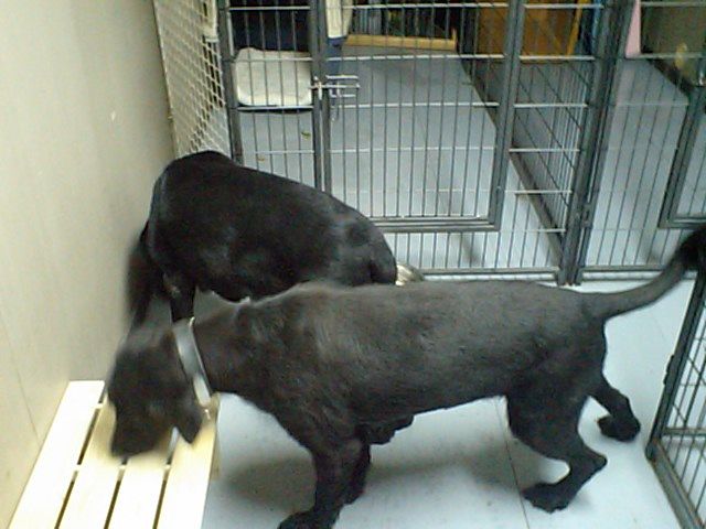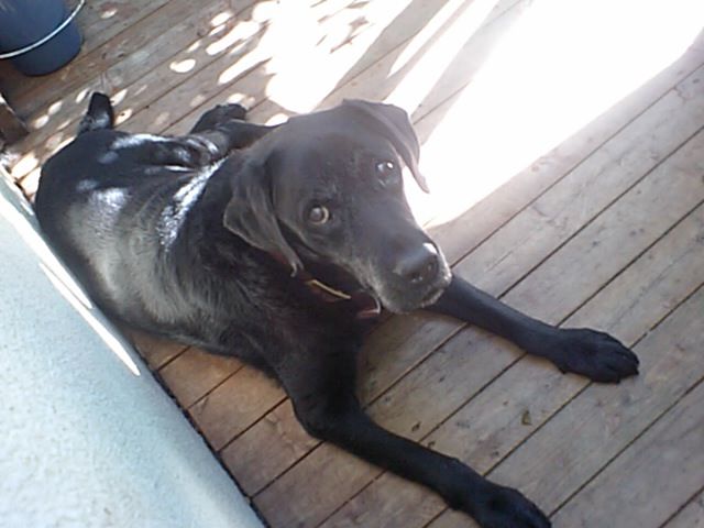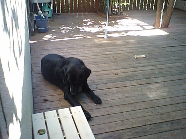 大治郎とはしゃぐモス君を尻目に、ラブラドールのブラッキー爺さんはのんびりしてます。