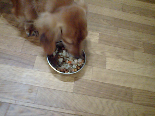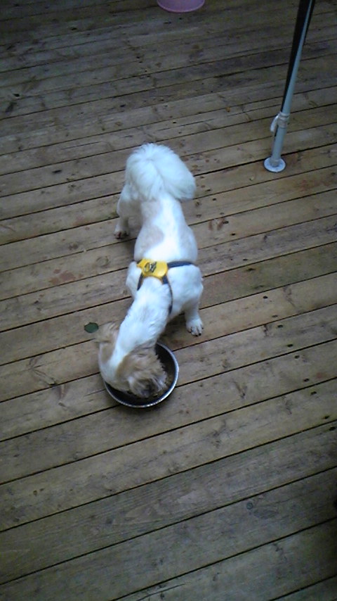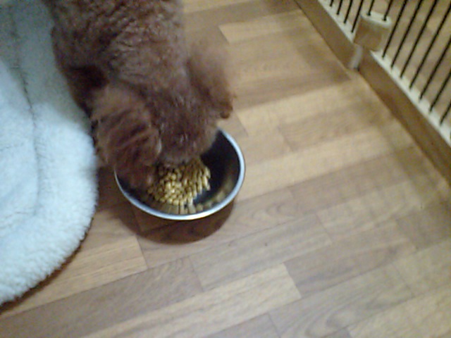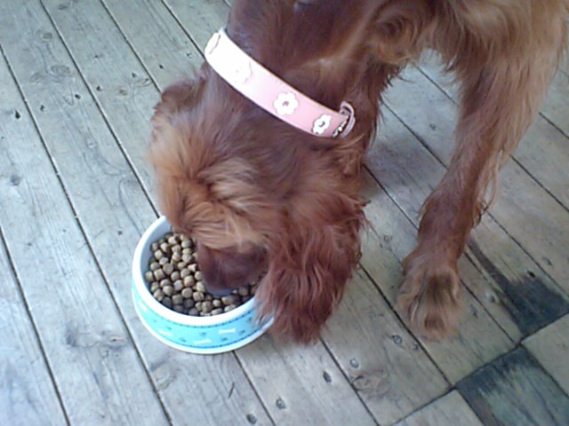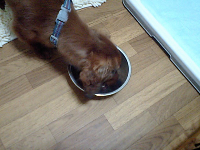 アイリッシュ・セターのエイミーちゃんは少し口を付けただけです。