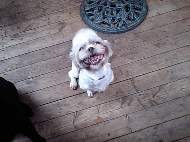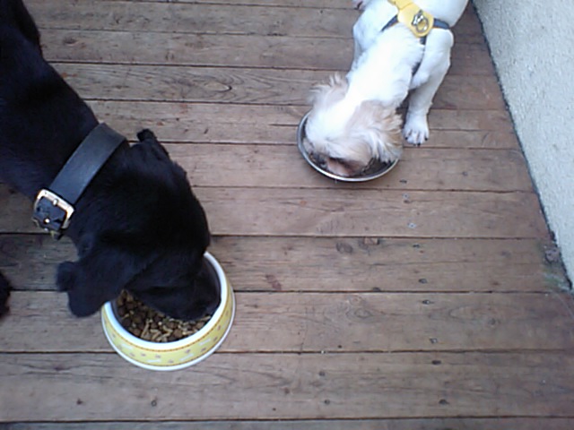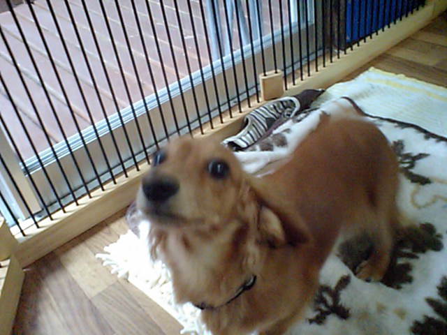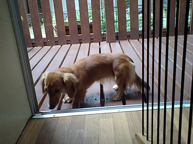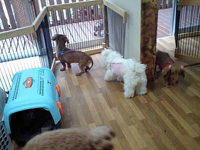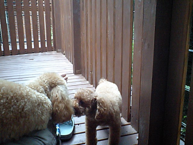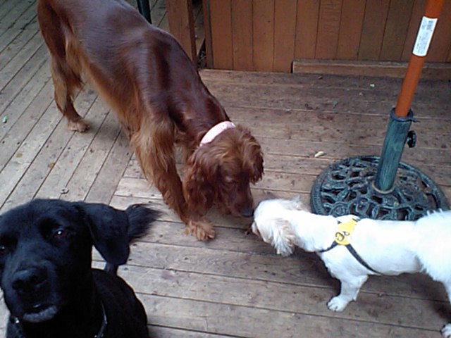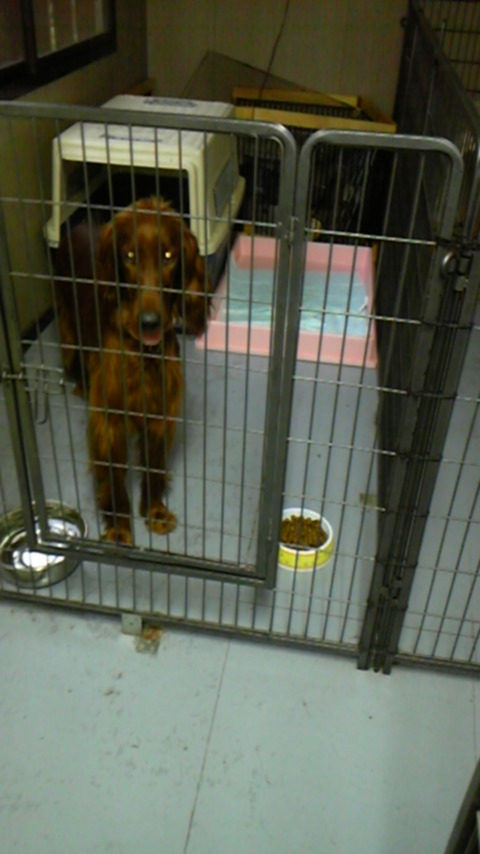 半分は我が家気分のラッキー君、入るなりアイリッシュ・セターのエイミーちゃんと遊んでます。その後は建物の中でくつろいでます。