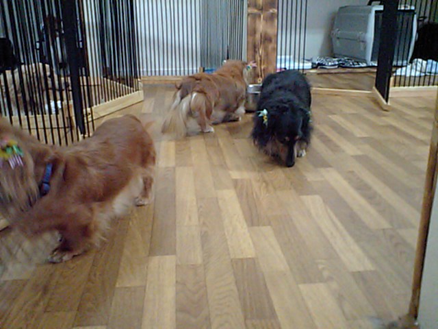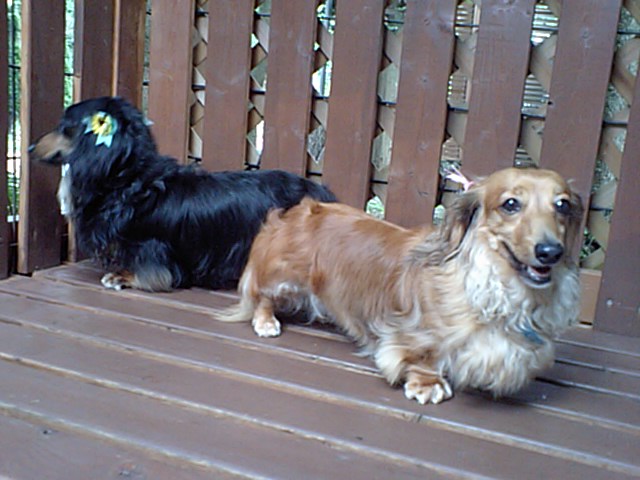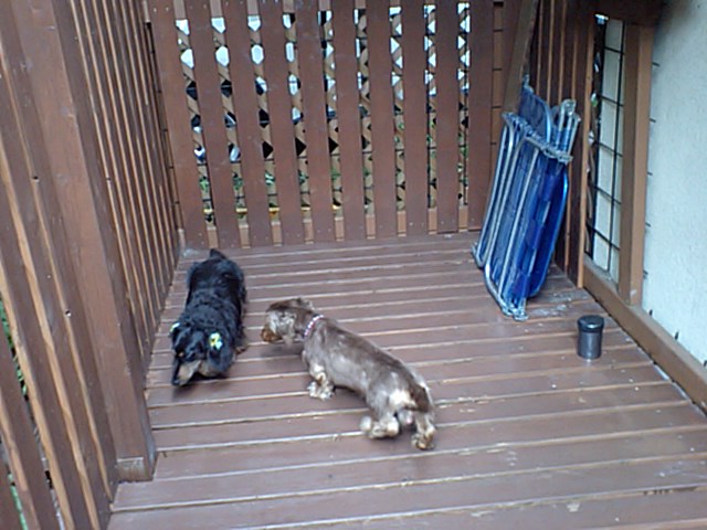 ご飯の後はダックスちゃんズもサークルから出てきました。デッキに出たり店内をウロウロしてます。