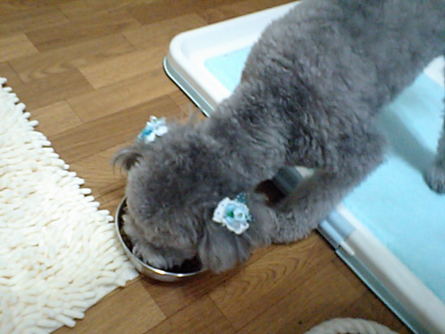 ミックスのメイちゃんはたちまち完食しました。