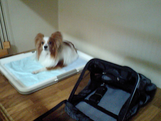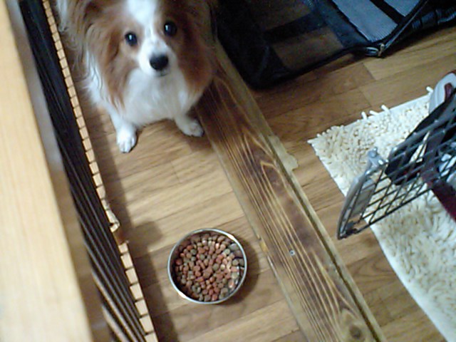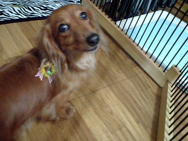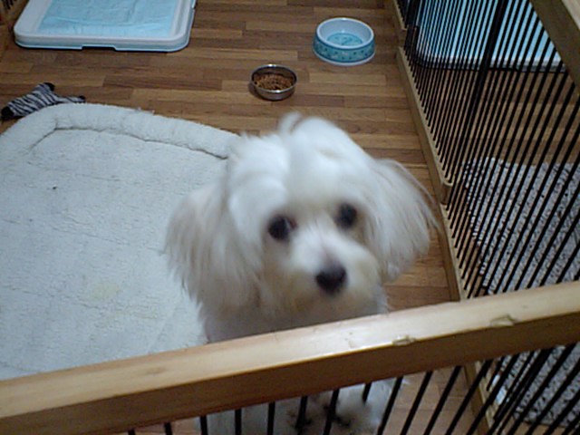 パピヨンのりんちゃんは相変わらずサークルの中です。