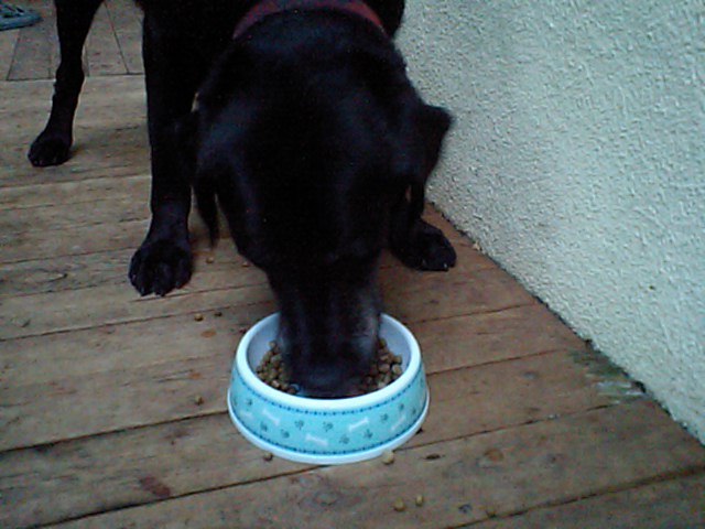 ラブラドールのブラッキー爺さんは相変わらずの食欲でした。