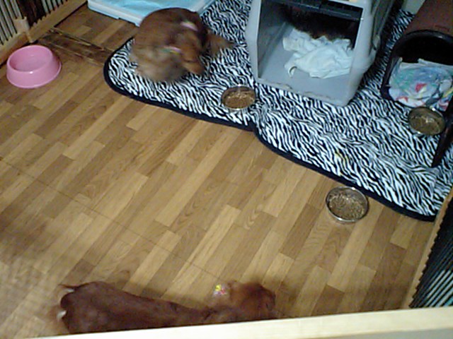 ダックスちゃんズはとりあえず「遊んで遊んで」って騒ぎです。近くにいると食べないかと思い、少し離れてました。しばらくしたらほぼ無くなってました。