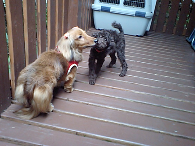ダックスのビリー君は他のダックスちゃんに近寄って怒られたりしてます。