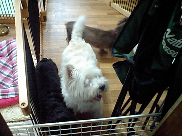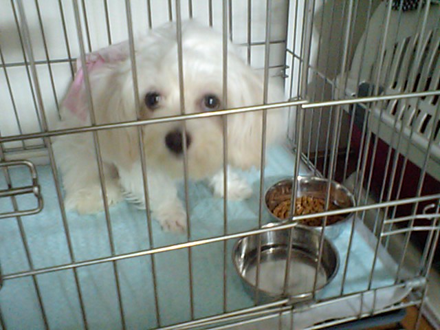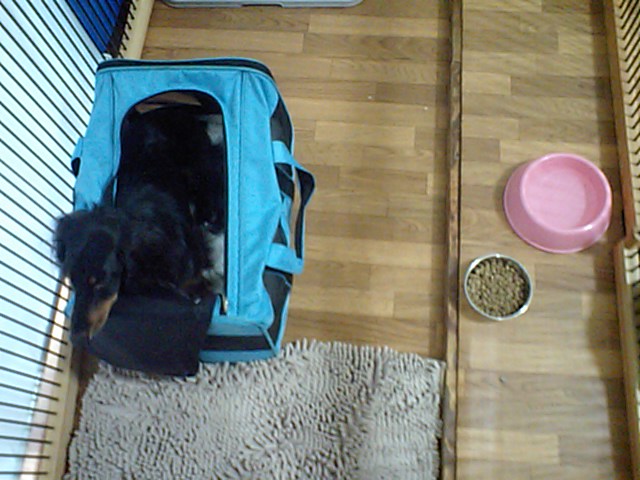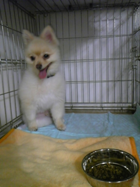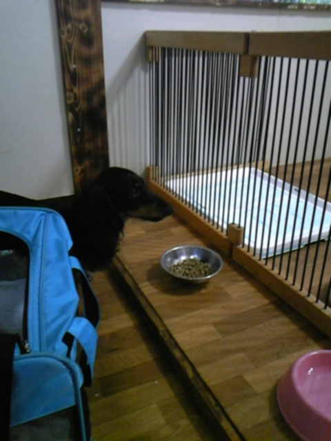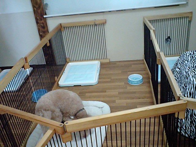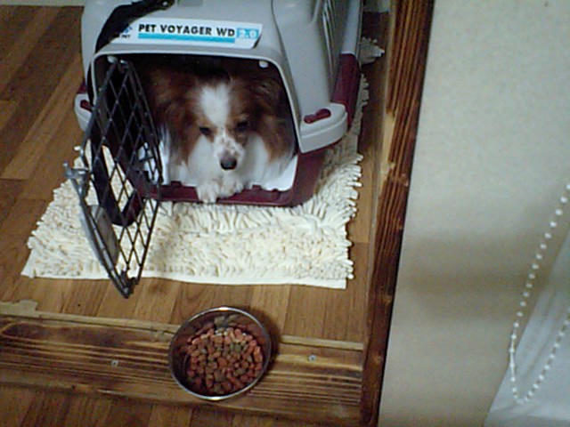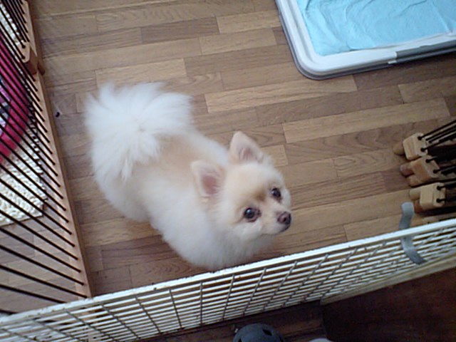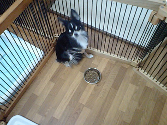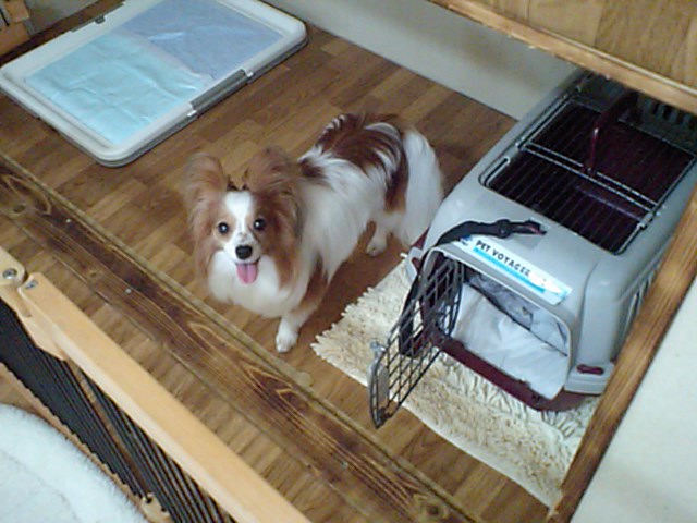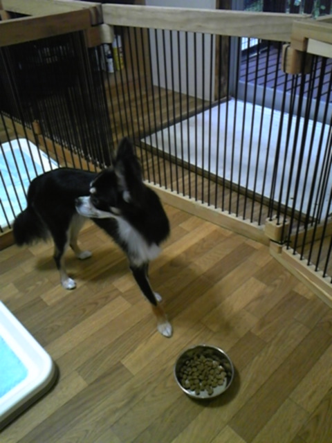 パピヨンのりんちゃんは相変わらずサークルの中。