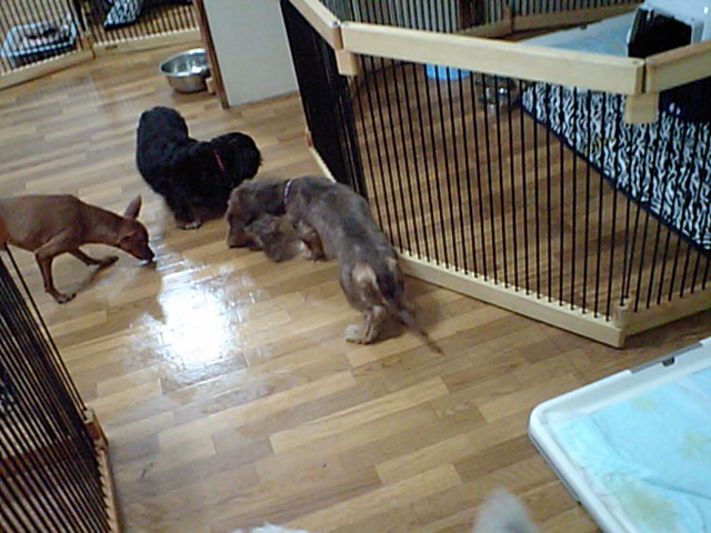 トイプーのシュシュちゃんもサークルから出て来ました。みんなとも仲良くなってます。