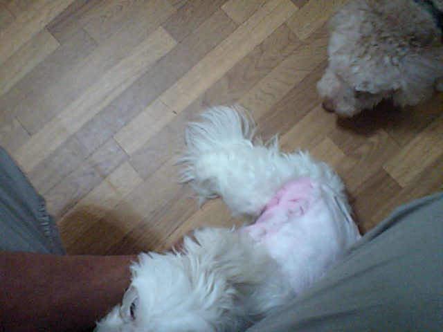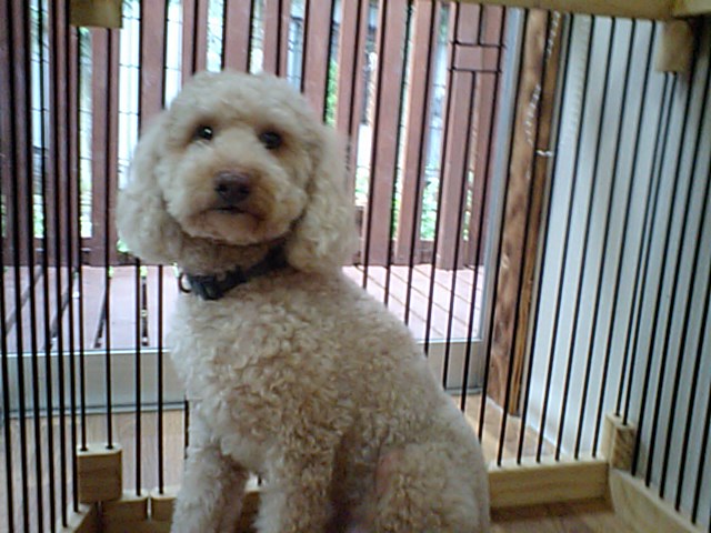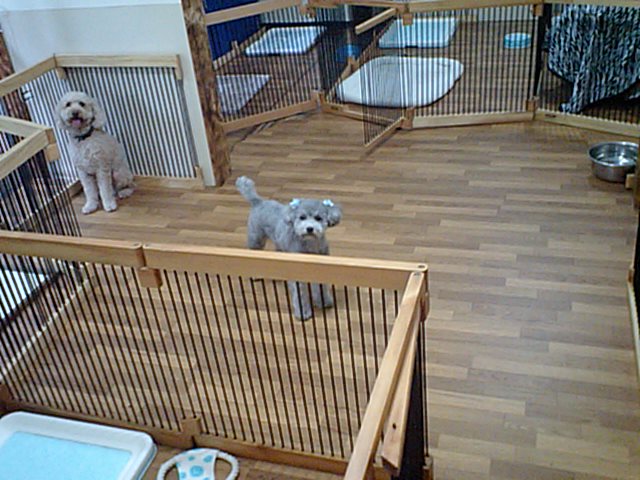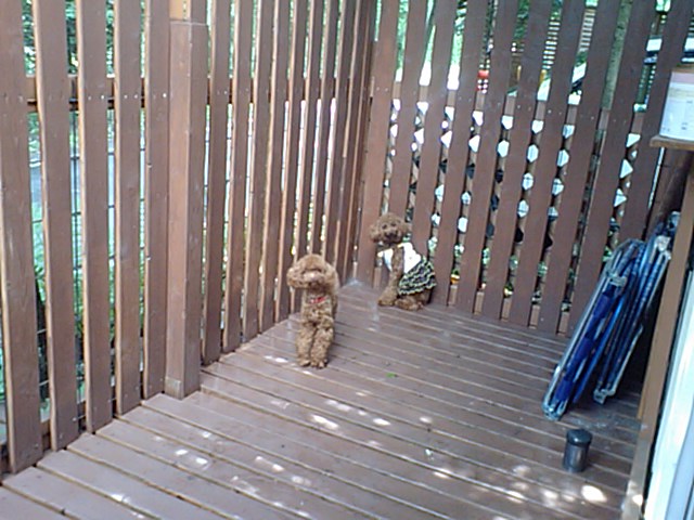 トイプーちゃんズの、リランちゃんとあずきちゃんはやっとサークルから出て、デッキでのんびりしたりしてます。