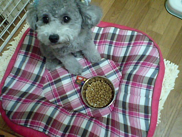 トイプーのシュシュちゃんは口を付けません。ふりかけをかけたら食べ出しました。