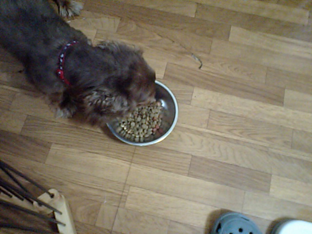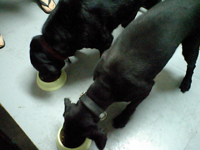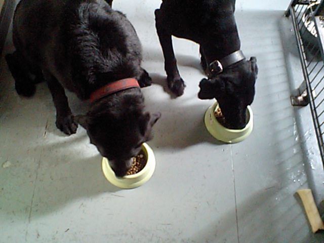 ラブラドールのブラッキー爺さんはたちまち完食しました。 オージーのマーブル君は夕べのご飯は完食してました。今朝はまだ口を付けません。