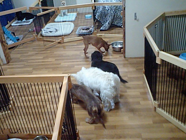もうチェックアウトしてしまいましたが、午前中の風景も。 午前中はウェスティーサクラちゃんやダックスのヒナちゃん、ミニピンのジャム君達が走り回ってました。