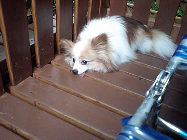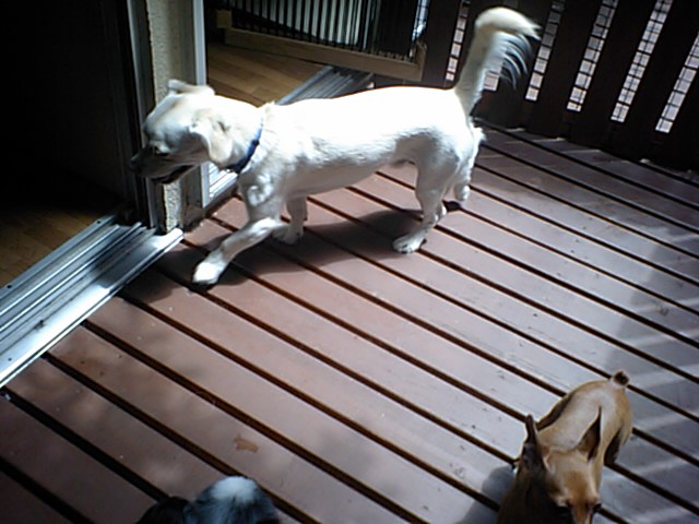 薄曇りで涼しいのでデッキでのんびりしてます。