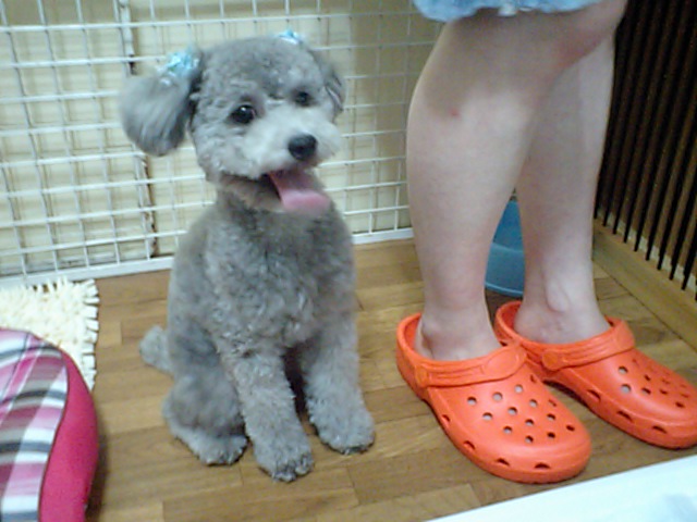 トイプーのシュシュちゃんがチェックインしました。シュシュちゃんもワンコが苦手との事、サークルの中に居て貰いますね。