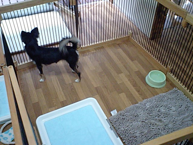 りんちゃんは他のワンコが苦手との事、サークルの中だけとの事です。飼い主さんを呼んでしばらく鳴いていましたが、やっと落ち着いて来ました。