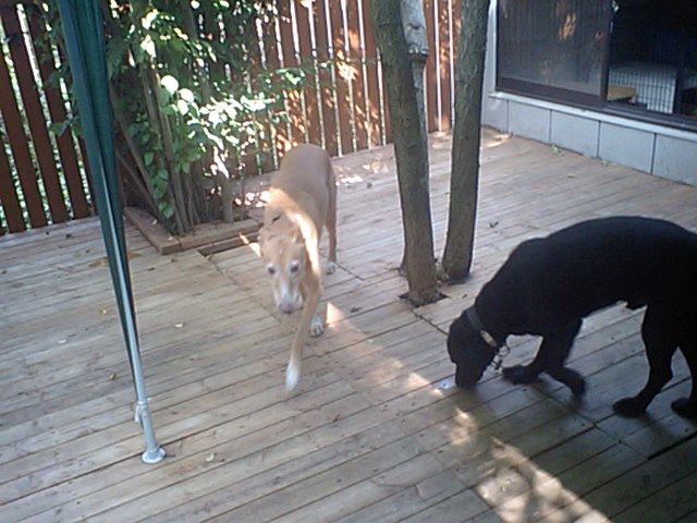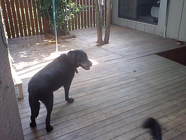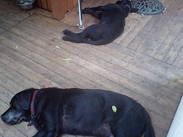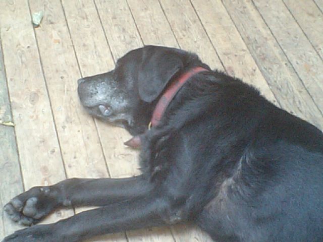 大型犬エリアではラブラドールのブラッキー爺さんが昼寝してます。最近は一番気持ちよい場所を探す名人です。