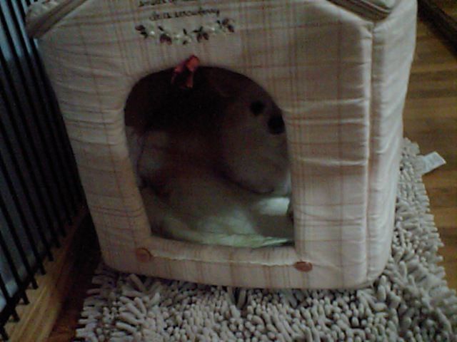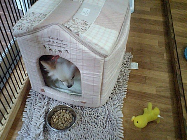 チワワのドリ君は少し店長に気を許してくれたみたい。すり寄って来て抱っこさせてくれました。でもその後はハウスに籠もってます。