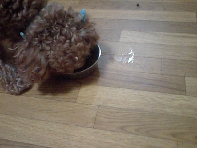 ダックスのシャロン君は口を付けません。そのまま置いておきます。