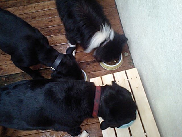 ラブラドールのブラッキー爺さんとボーダーのサエノスケ君、仲良く完食しました。