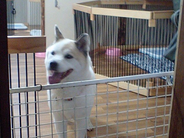 柴犬のすずちゃんがチェックインしました。まだ少し寂しがってますが、みんなとは仲良く出来そうですよ。