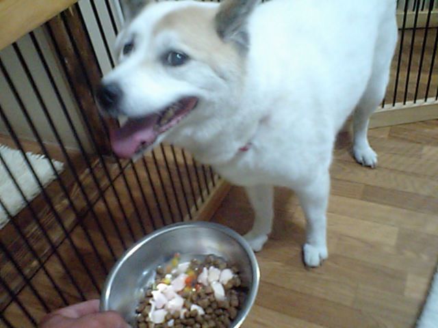 ボーダーのサエノスケ君はすぐに完食しました。やはりみんなと一緒のご飯は美味しいかな?