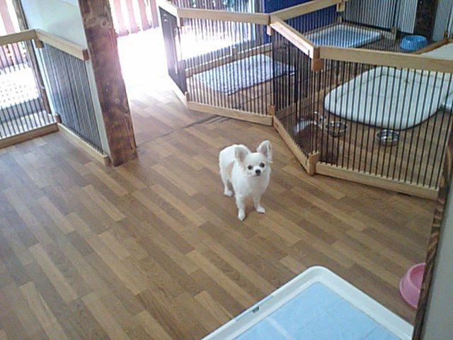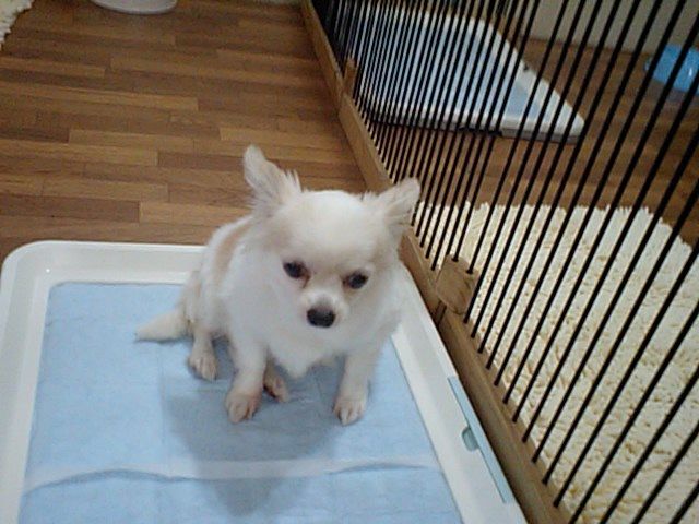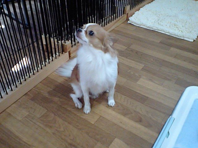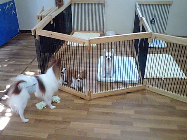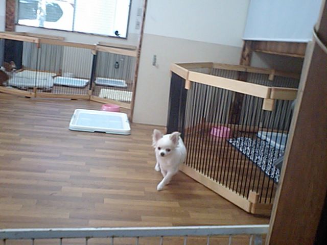 チワワちゃんズのかい君は去年同様に固まってますが、まりんちゃんはサークルを出て店内を探検してます。
